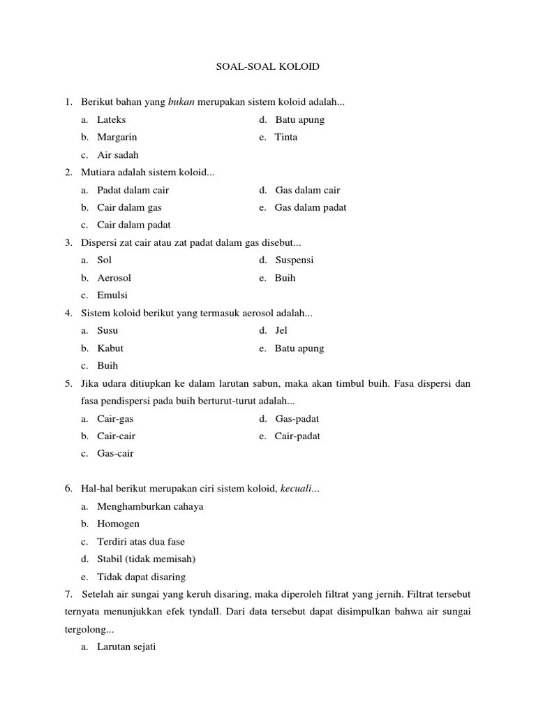 Kakak ingin membagikan kepada adik adik mengenai soal dari mata pelajaran kimia kelas x sma/ma. Oke, berikut ini contoh soal pilihan ganda (pg) kimia kelas xii sma/ma bab i sifat koligatif larutan dan jawabannya. Contoh larutan yang merupakan elektrolit kuat adalah. Massa1 = massa zat terlarut. Pusat perbukuan departemen pendidikan nasional, jakarta, 2009.